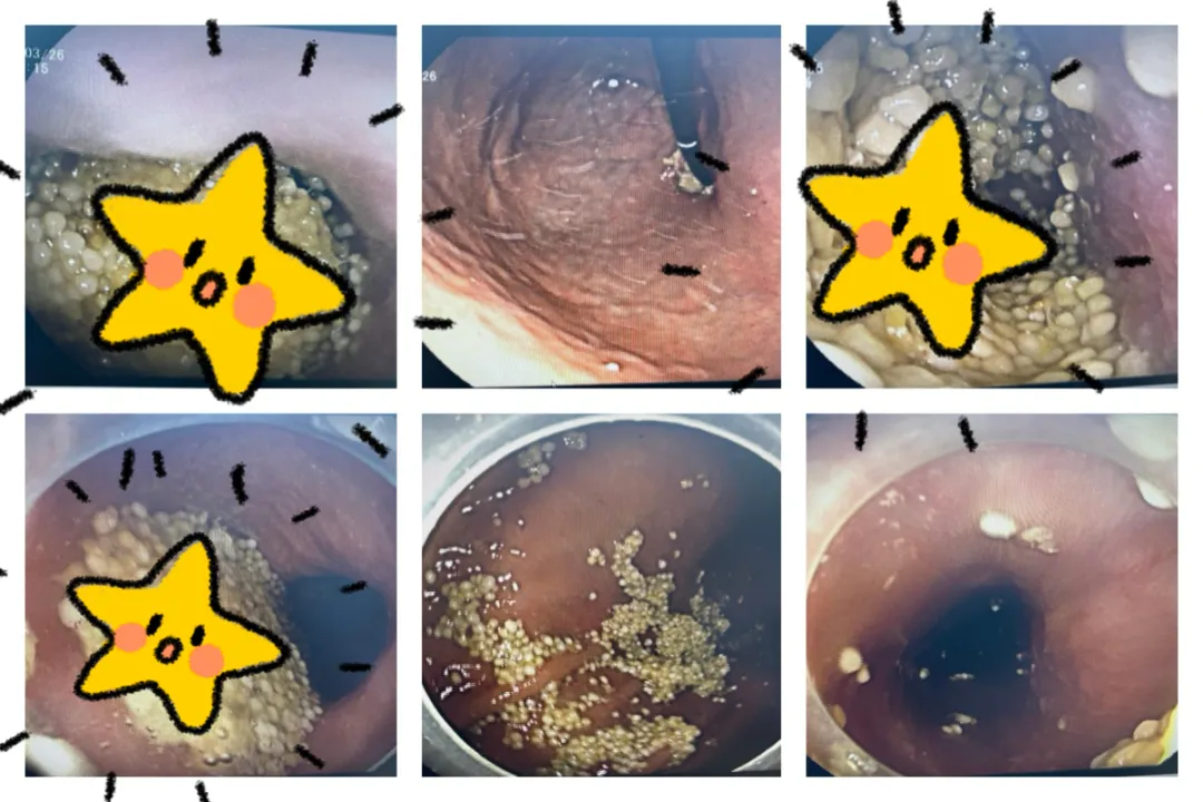 就这样一遍又一遍地剥离、松动、分解、清除,时间一分一秒悄然流逝。既要精准分离紧密黏连的鱼子,又要严防脆弱的食道黏膜受损,每一个动作都精准到毫米,每一次抓取都小心翼翼、如履薄冰。在内镜中心团队的密切配合下,凭借丰富的临床经验与精湛技术,历时近一小时,如同疏通被淤泥堵死的河道,一点点将梗阻物顺利取出,最终为老人成功打通“生命通道”。