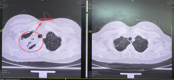 2022年2月,24岁的小许新婚不久后被诊断为肺结核,来到南通六院就诊。详细询问后得知,她已受反复咳嗽咳痰折磨5年多,曾接受过抗感染治疗,一直不见起色。半年来病情加重,最近更是出现了严重的气急症状。进一步检查发现,小许被确诊为肺结核、支气管结核(淋巴结瘘型)。